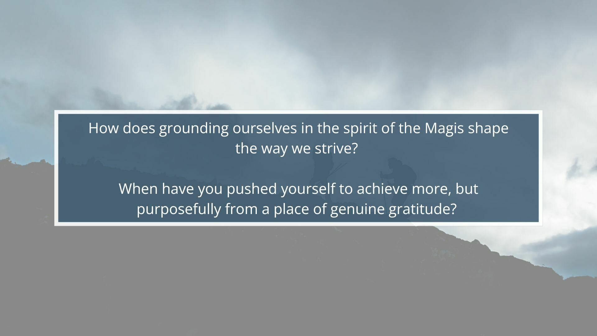 • Context: The Magis invites us to offer our best, but not to lose ourselves in the chase. Growth, ambition, and drive are a beautiful gift, but they’re meant to be held in balance with gratitude. Let’s reflect on how we hold those tensions in our own lives.